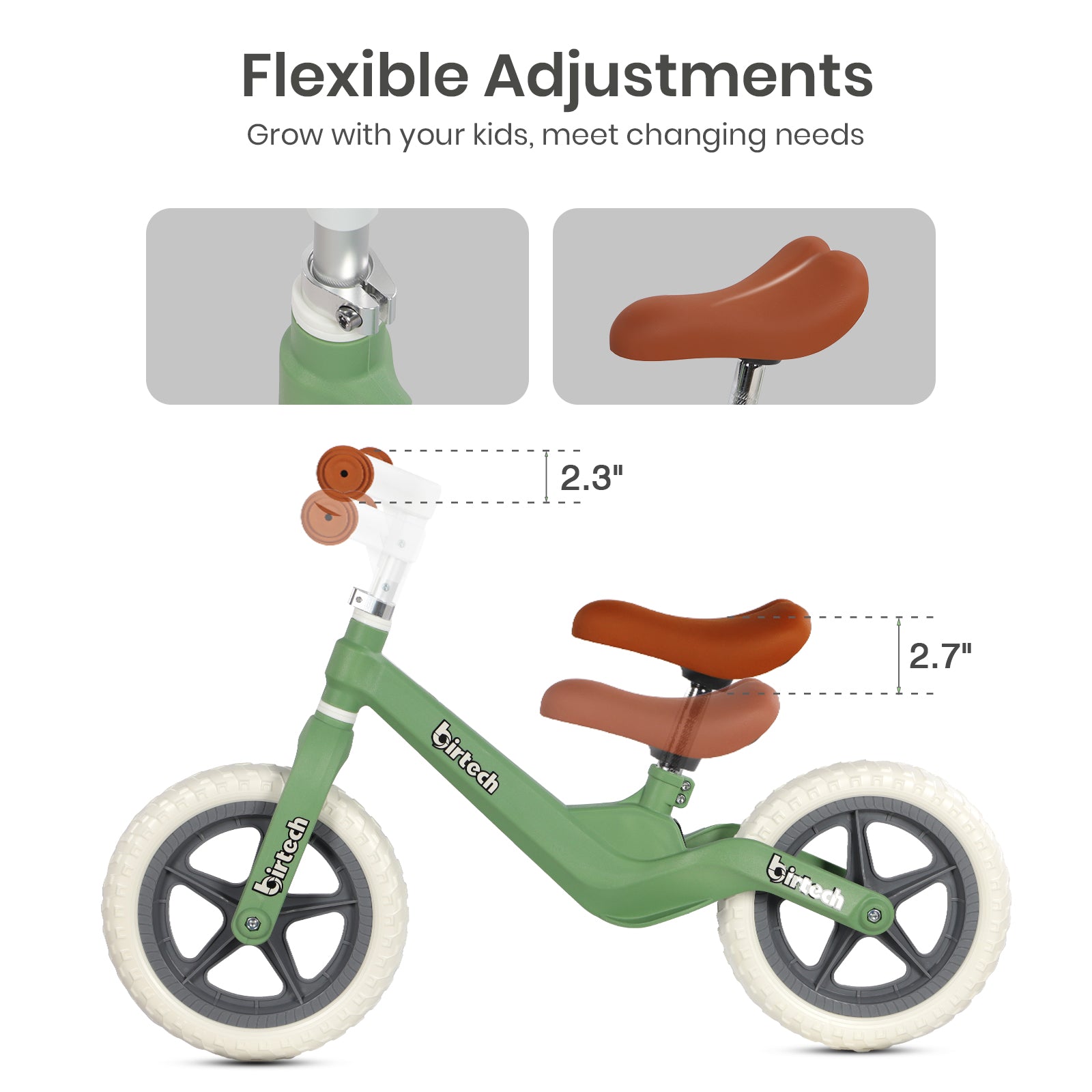 - Adjustable Fit: Seat and handlebars adjust as your child grows—built to last through early cycling years.