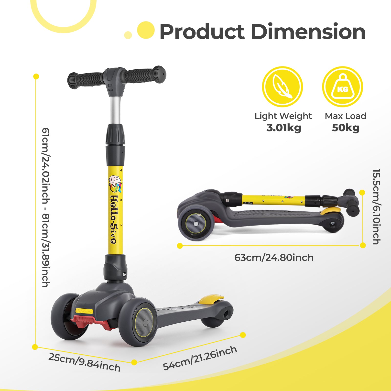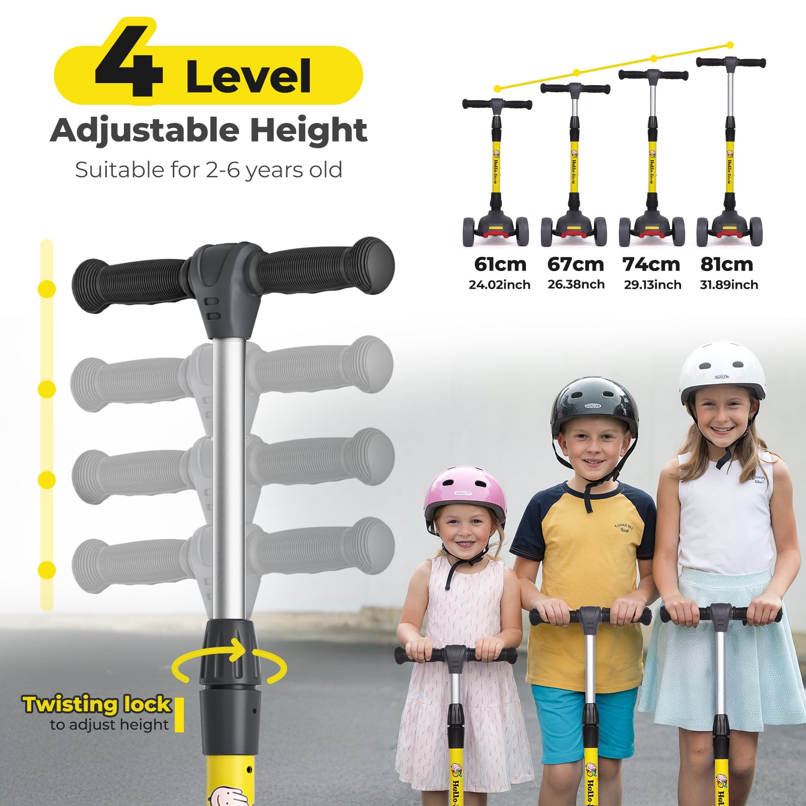 - Adjustable Height: Handlebar adjusts to 61cm, 67cm, 74cm, and 81cm. With a maximum load of 50KG, the scooter grows with your child for a customized riding experience.