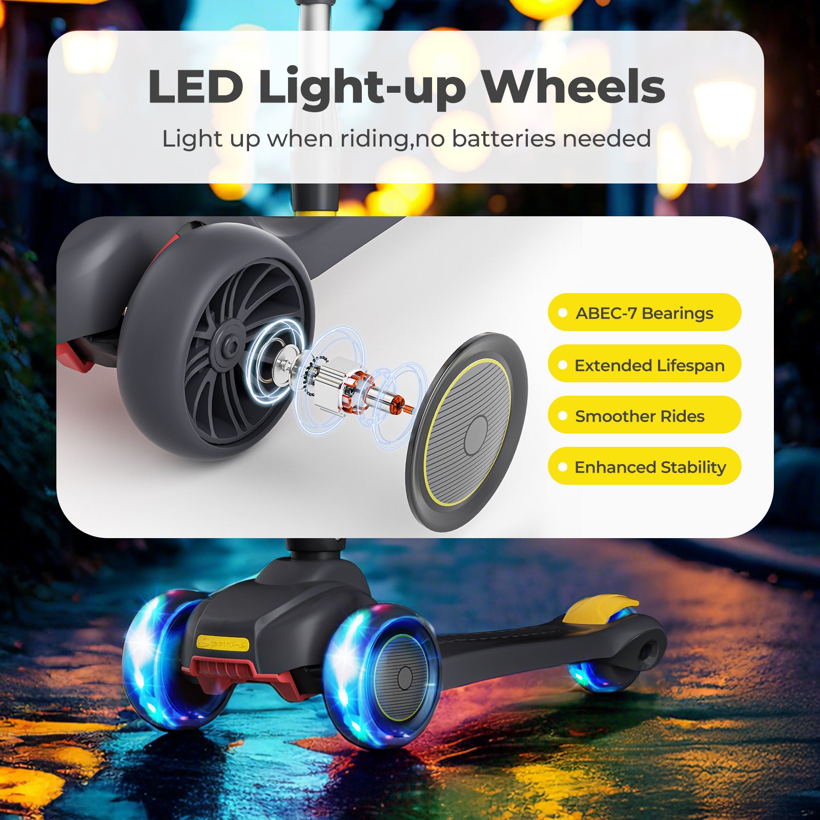- Stable and Safe: Three-wheel design for excellent balance (ages 2–8). Extra-wide non-slip deck and foot-activated brake for quick, safe stops. ABEC-7 precision bearings ensure a smooth ride.