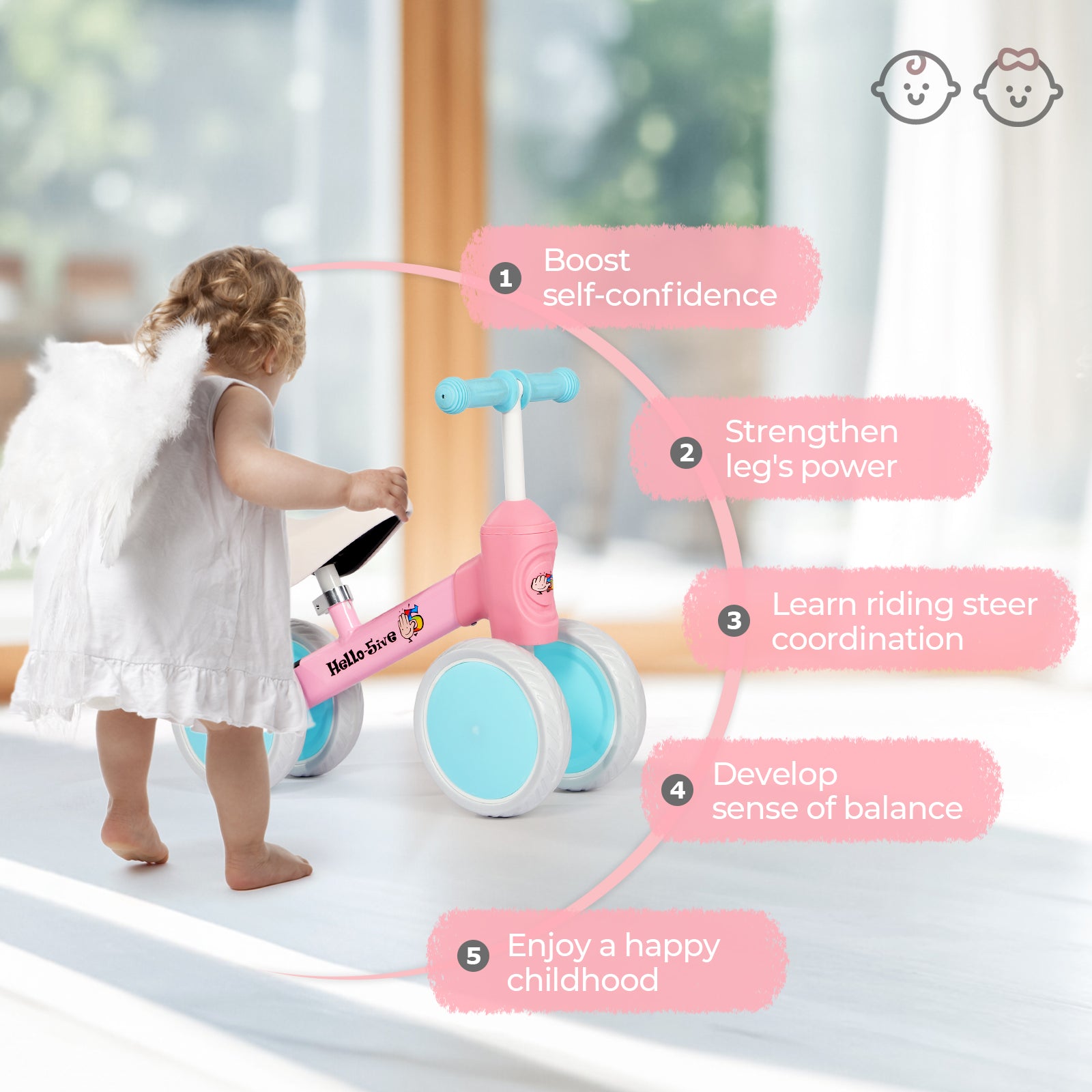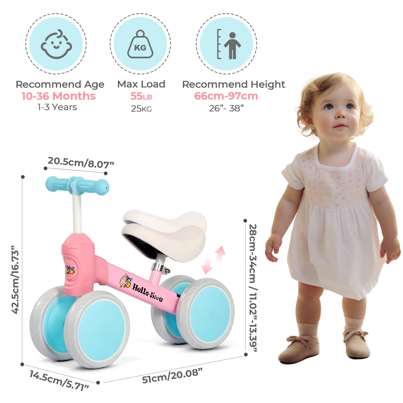 - Ergonomic Height: Adjustable seat height (28-34cm) helps babies learn to walk and ride comfortably. Promotes proper knee bend and allows for foot-powered movement, facilitating transition to traditional bicycles in the future. Ideal for 1-3 year-olds.