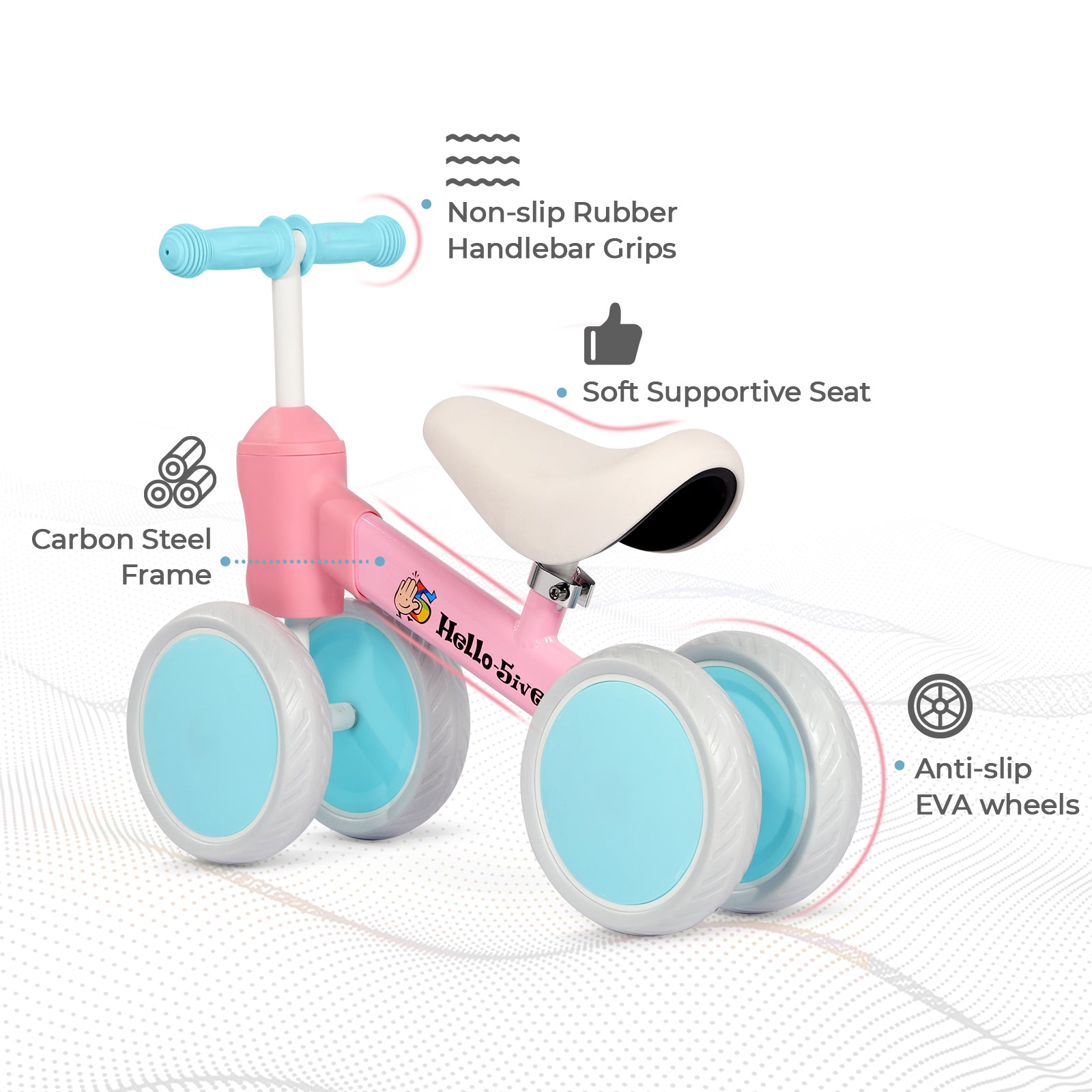 - Durable and Comfortable Riding: Made of lead-free, non-toxic materials with a thickened carbon steel frame for stability. Wide EVA wheels offer wear-resistance, non-slip grip, and noise-free riding. Non-slip rubber handlebar and ergonomic soft seat provide comfort.