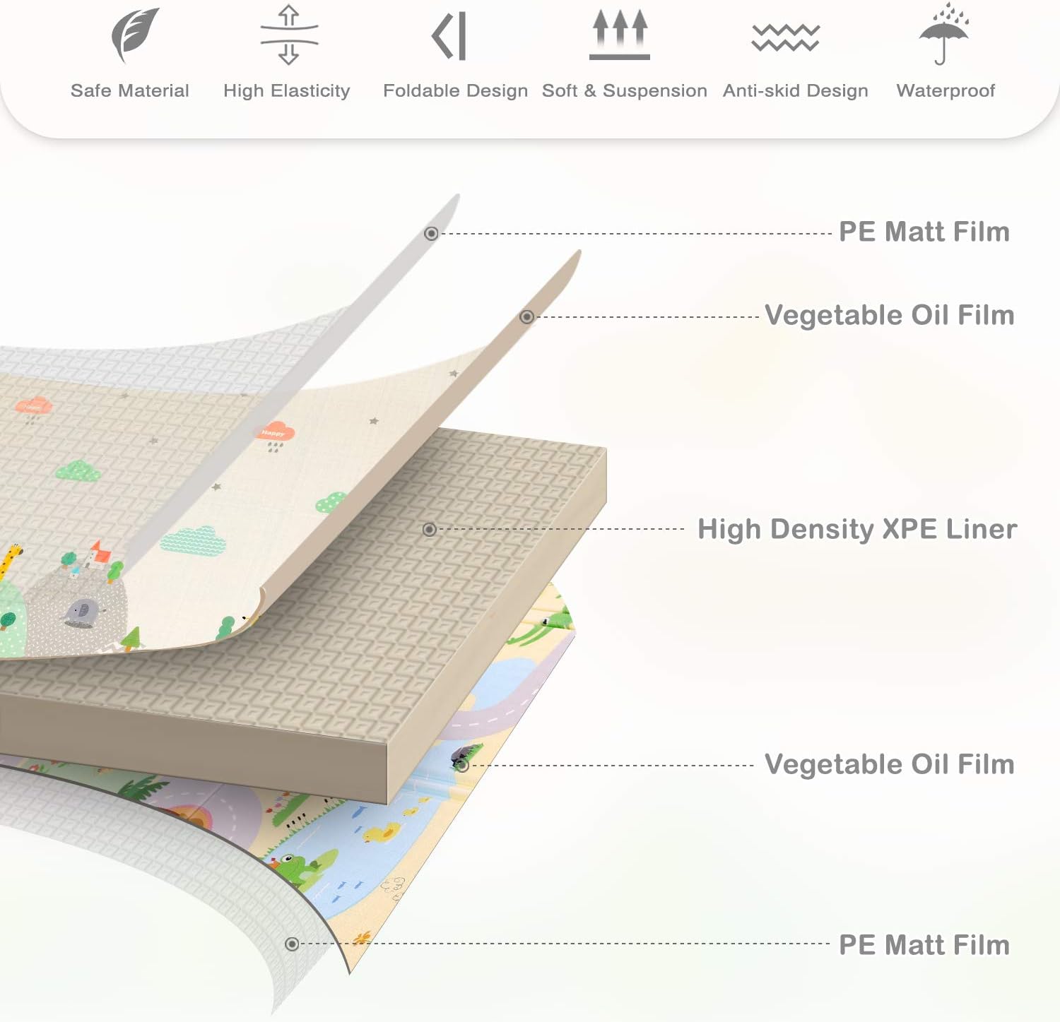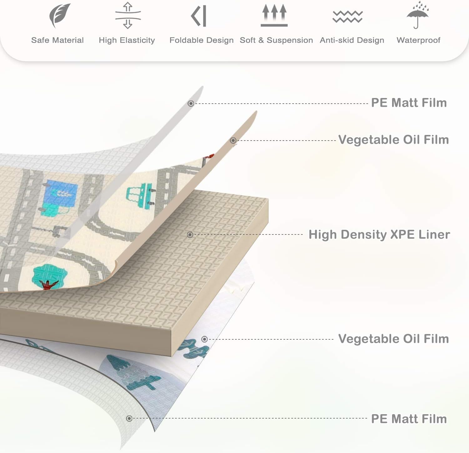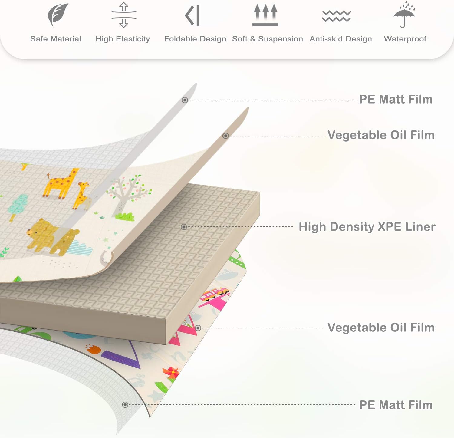 - Safe Non-Toxic XPE Material: Toddler playmat is made of high density XPE material with PE lamination on both sides. It features non-toxic, eco-friendly, wearable, higher tensile strength, anti-light, odorless, good flexibility, non-volatile. Good choice for infants from birth to older.