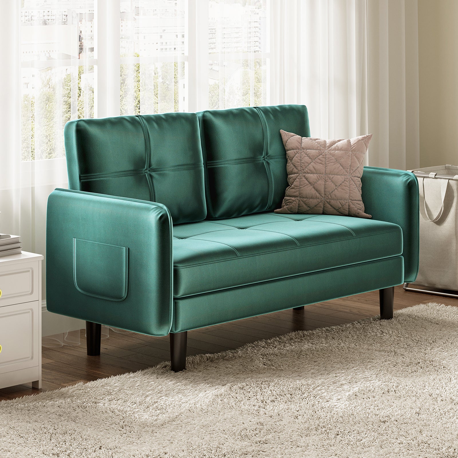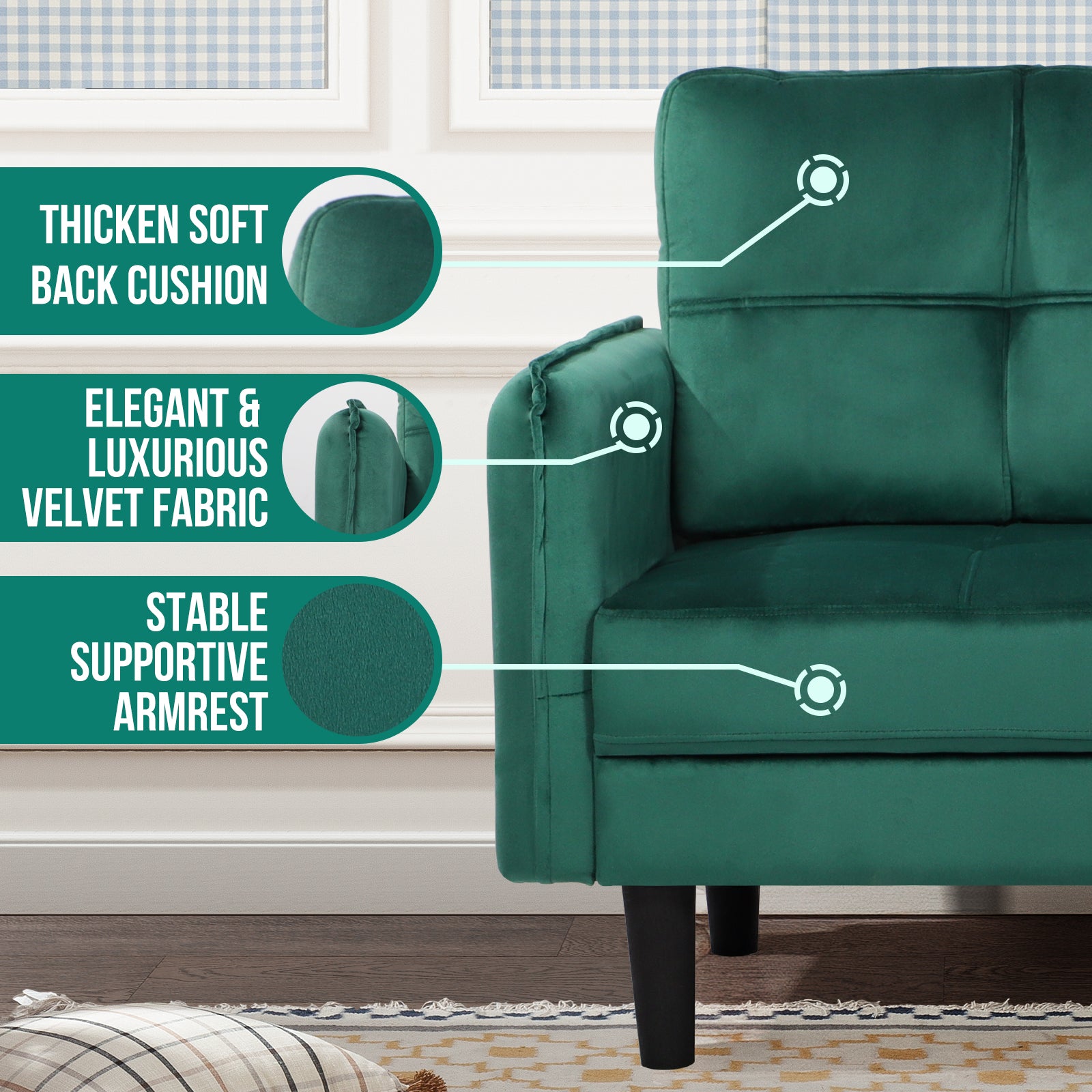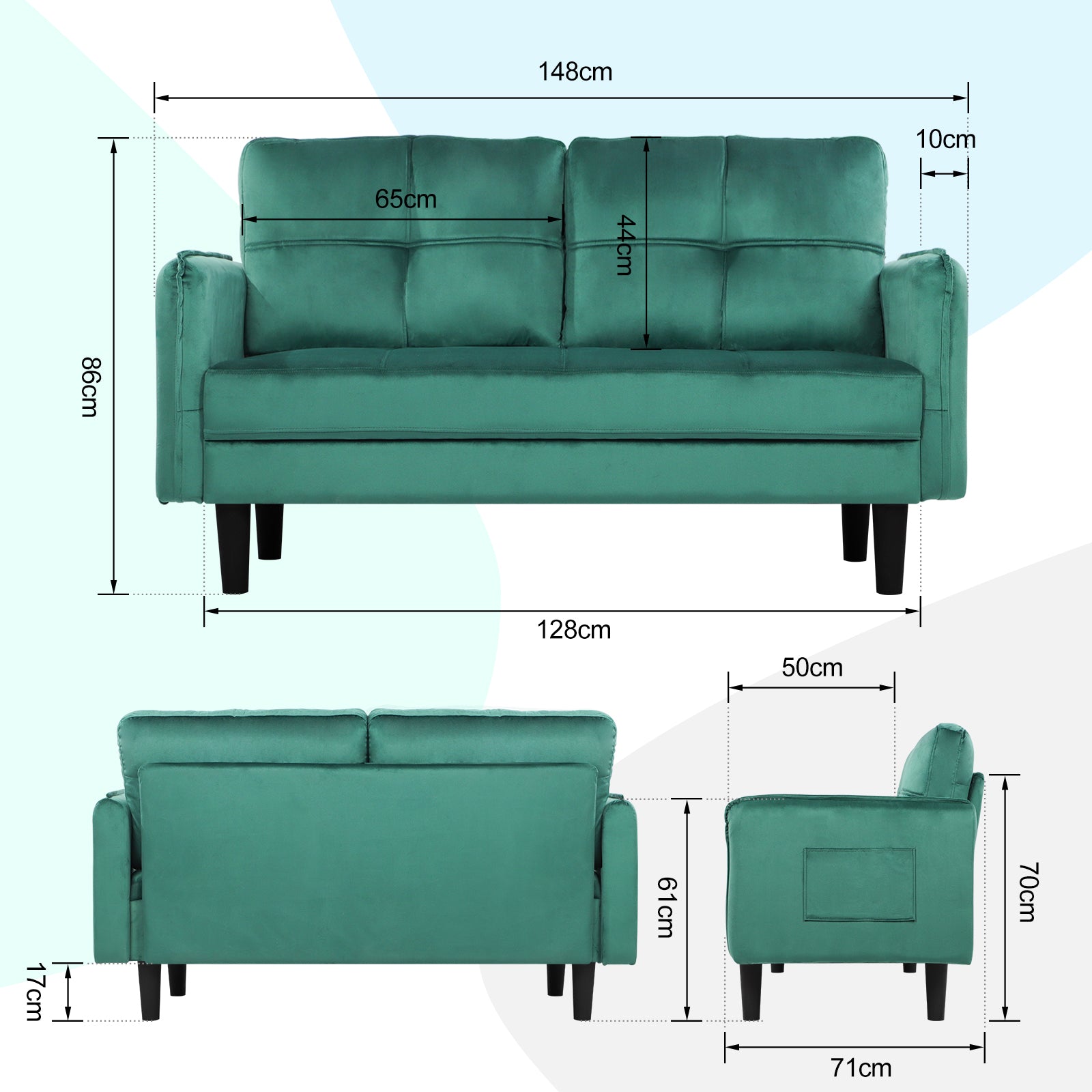 Modern 2-Seater Velvet Sofa with Cushions and Side Pockets