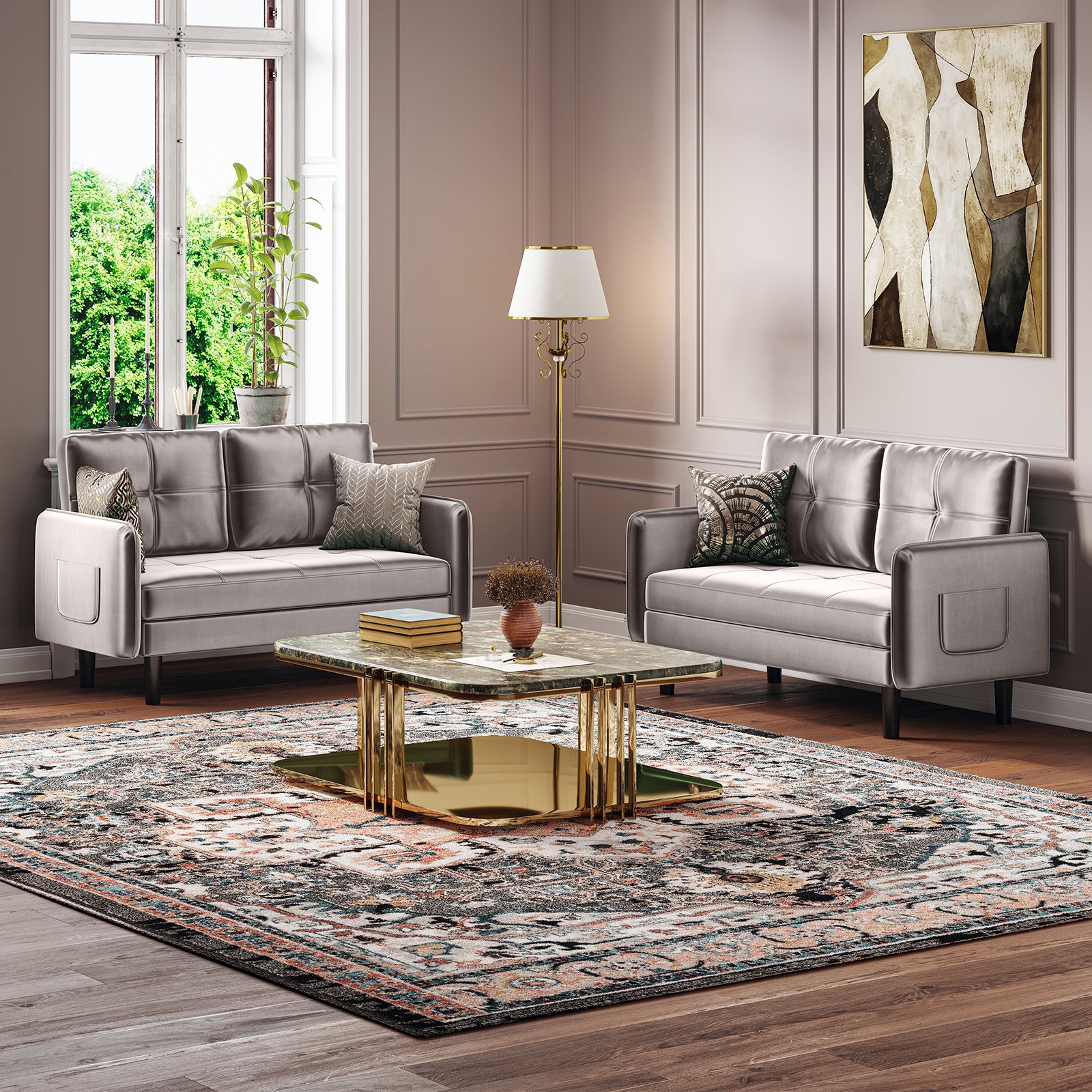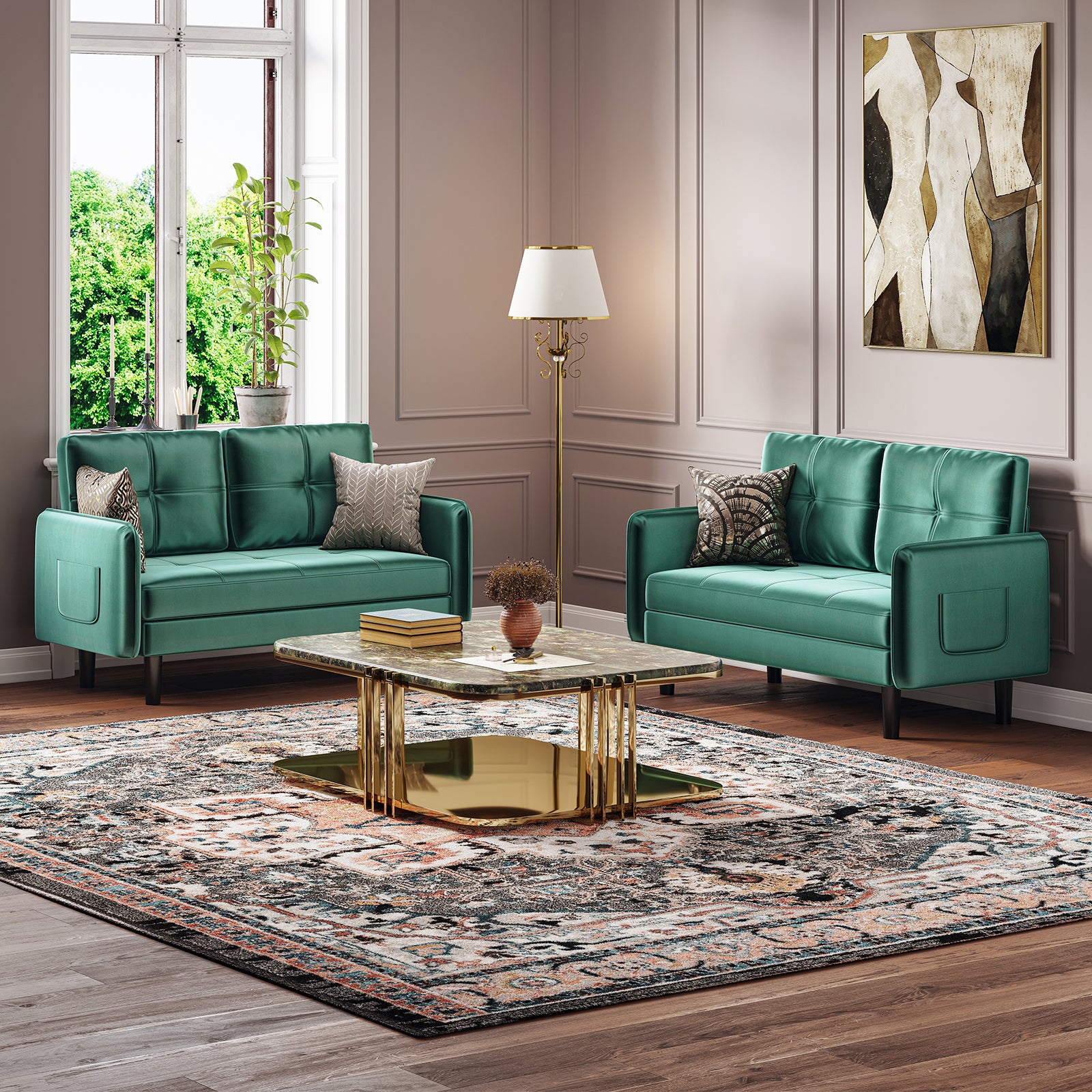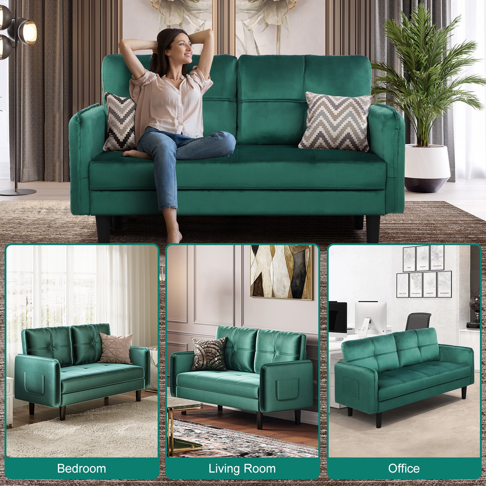 Modern 2-Seater Velvet Sofa with Cushions and Side Pockets