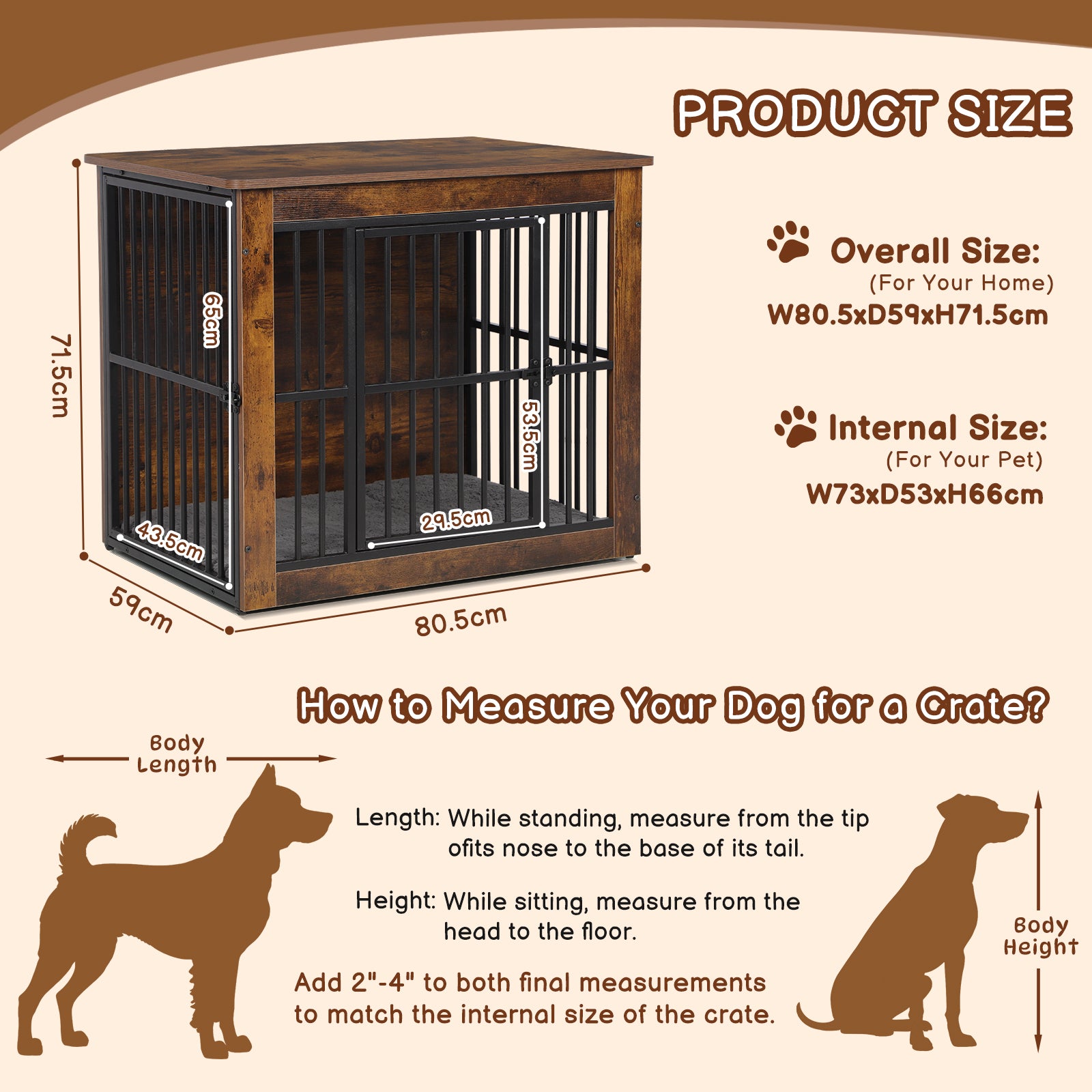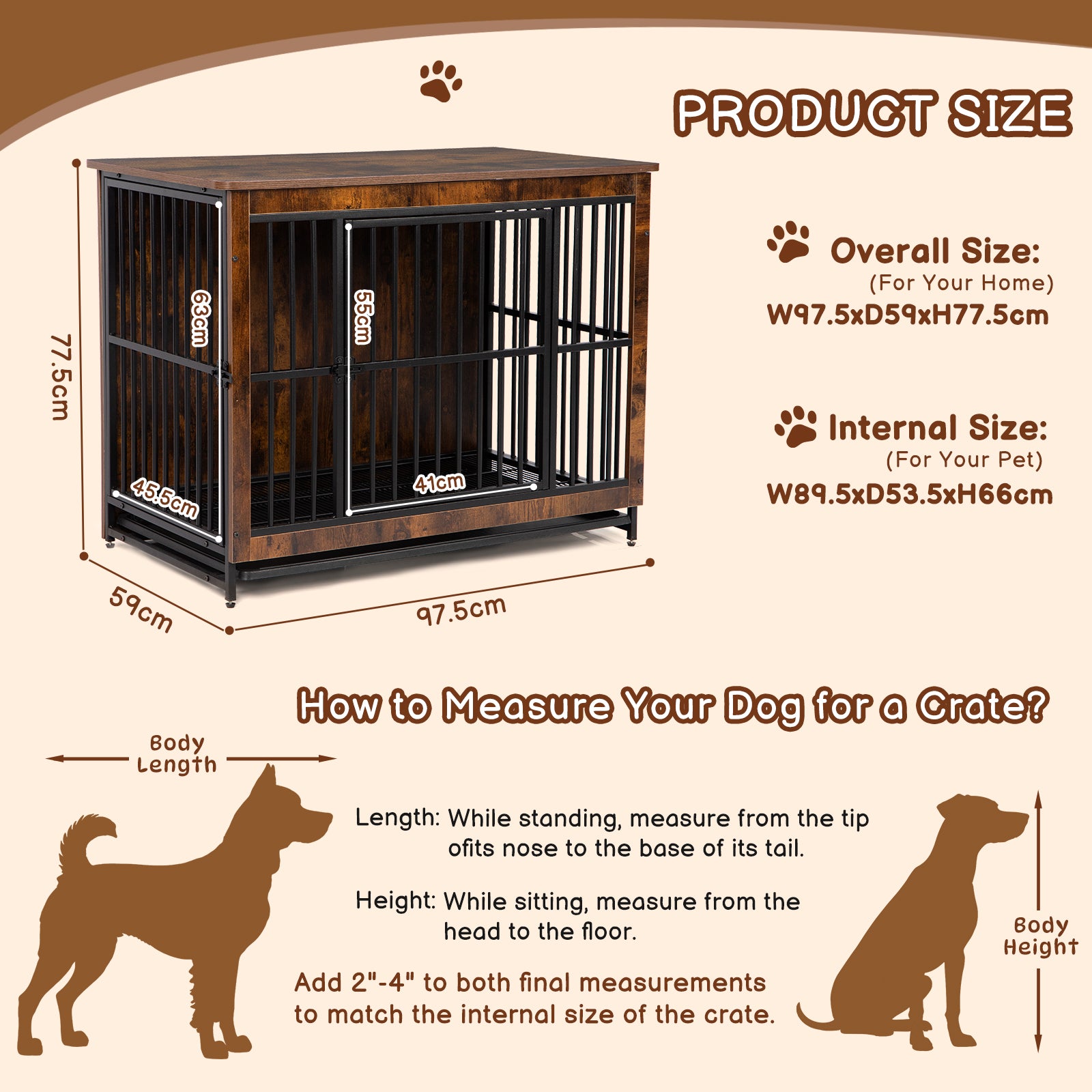 - Size Information: Outer: 97.5×59×77.5cm; Inner: 89.5×53.5×66cm. Suitable for medium to large dogs. Please measure your pet before purchasing.
