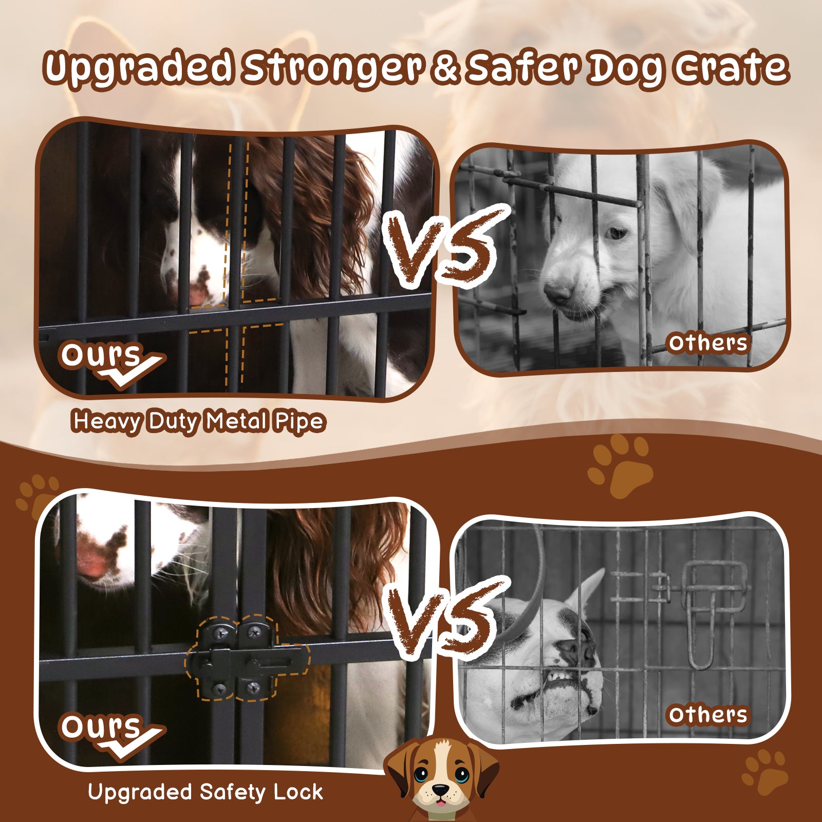 - Durable and Stable: Built with chew-resistant metal and 15mm particleboard. Waterproof, easy to clean, and includes anti-slip foot pads to protect floors.
