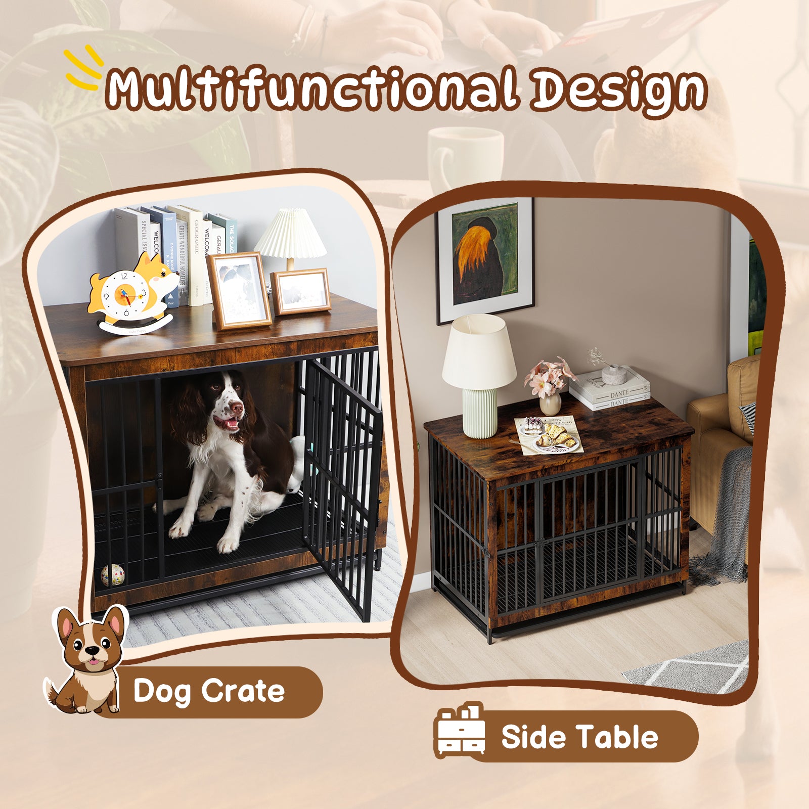 - Multipurpose Design: Works as both a stylish dog crate and functional furniture like a side or bedside table. Ideal for storing pet essentials or home decor.